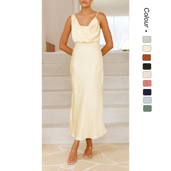Abito Sexy senza spalline in seta di puro colore abito lungo abito da sera alla moda da donna nuovo arrivo elegante stile impero