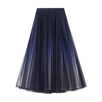 Falda plisada de cintura alta de primavera 2024, faldas Midi de punto de retales largas para Mujer, faldas Midi elegantes de colores mezclados para Mujer