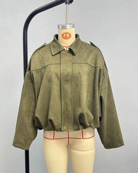 Nueva moda de tela de gamuza para mujer Chaquetas de bombardero 2025 casual manga larga cremallera abrigos sueltos chaqueta recortada prendas de vestir