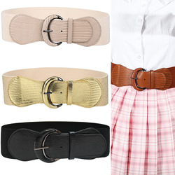 Mode élastique ceinture femme taille ceinture dame arc ceintures solide large ceinture Faux cuir Corset ceinture